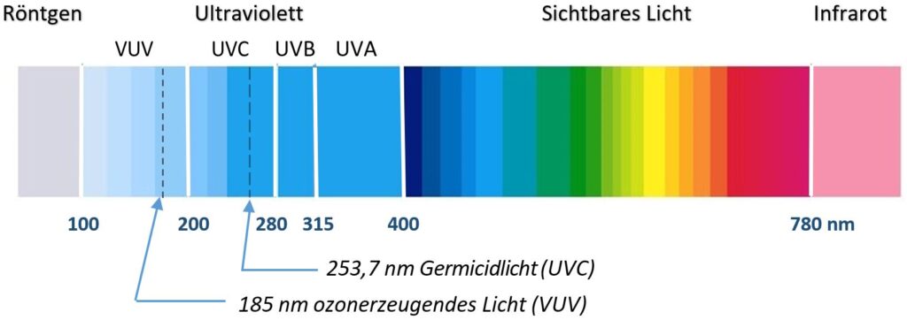 Positionierung der kurzwelligen 185 nm ozonerzeugenden Strahlung im Lichtspektrum: