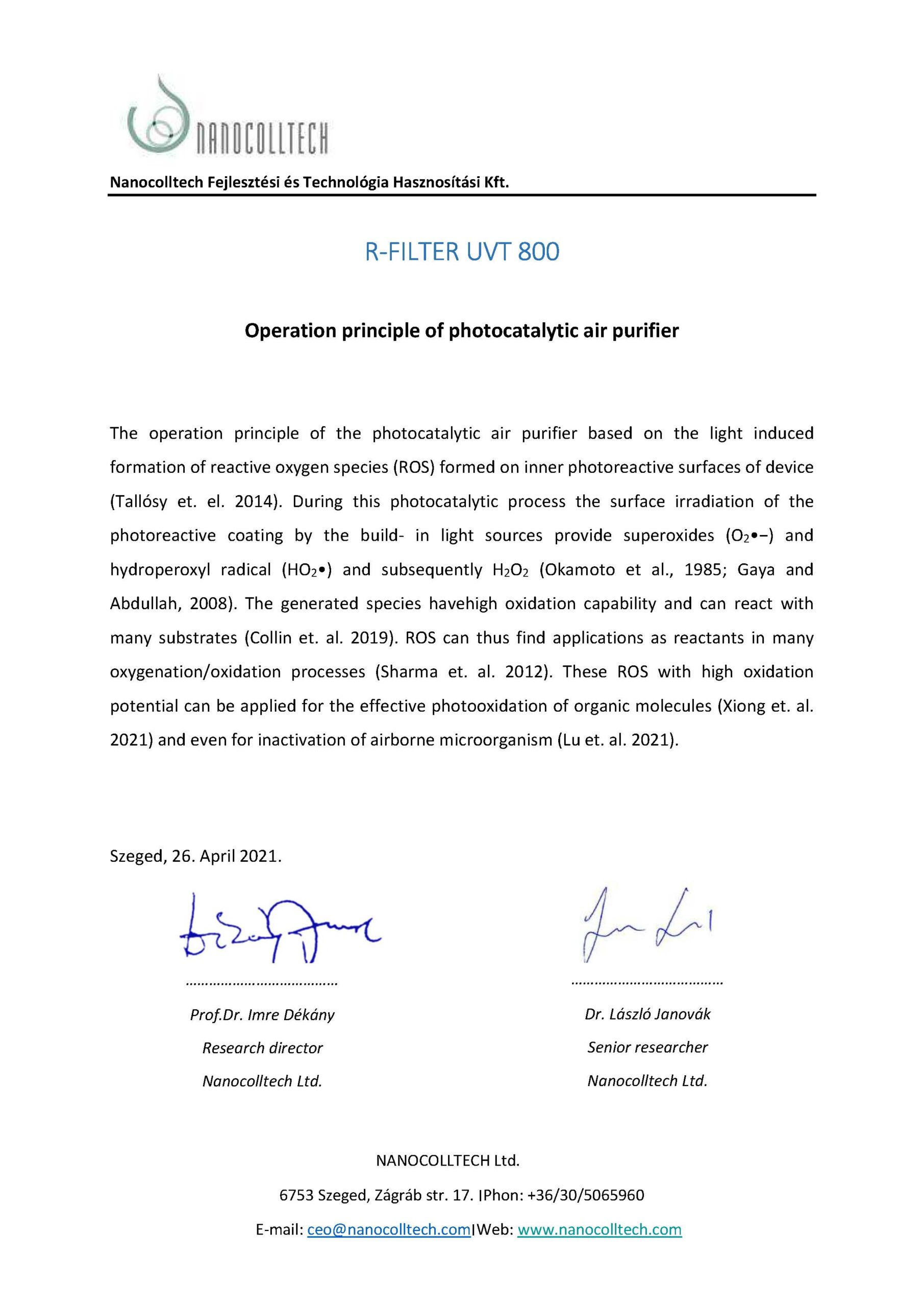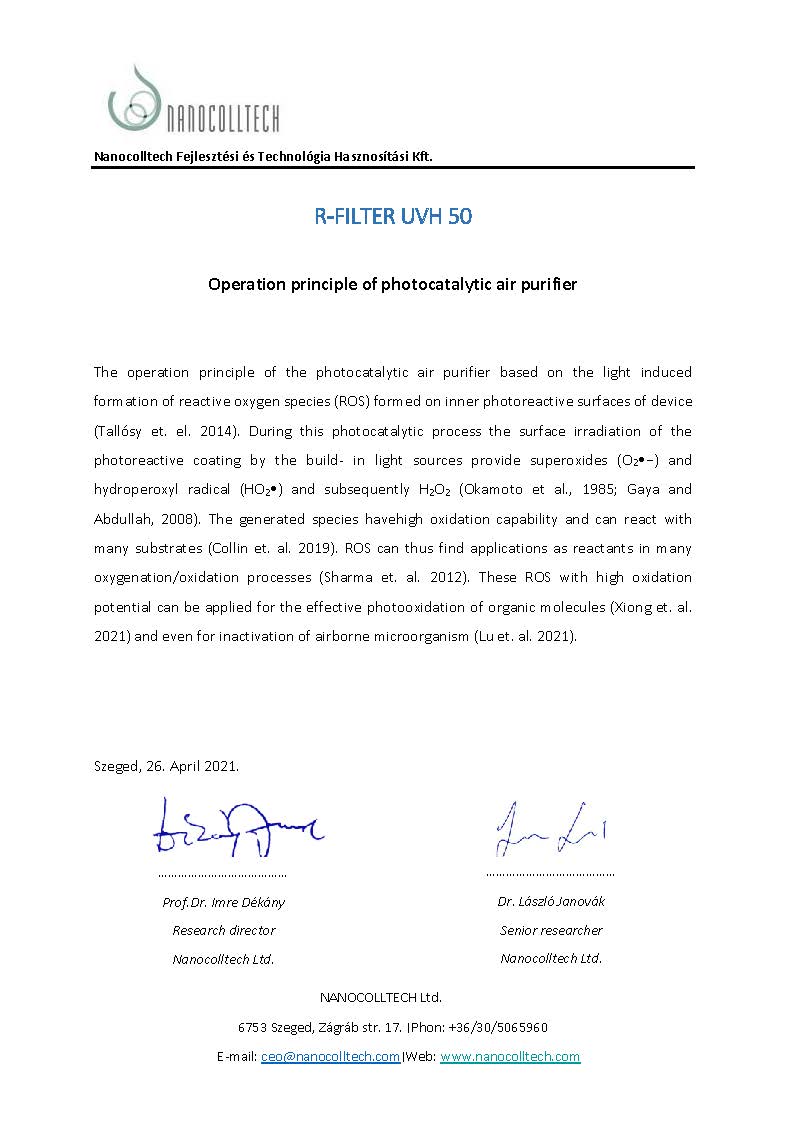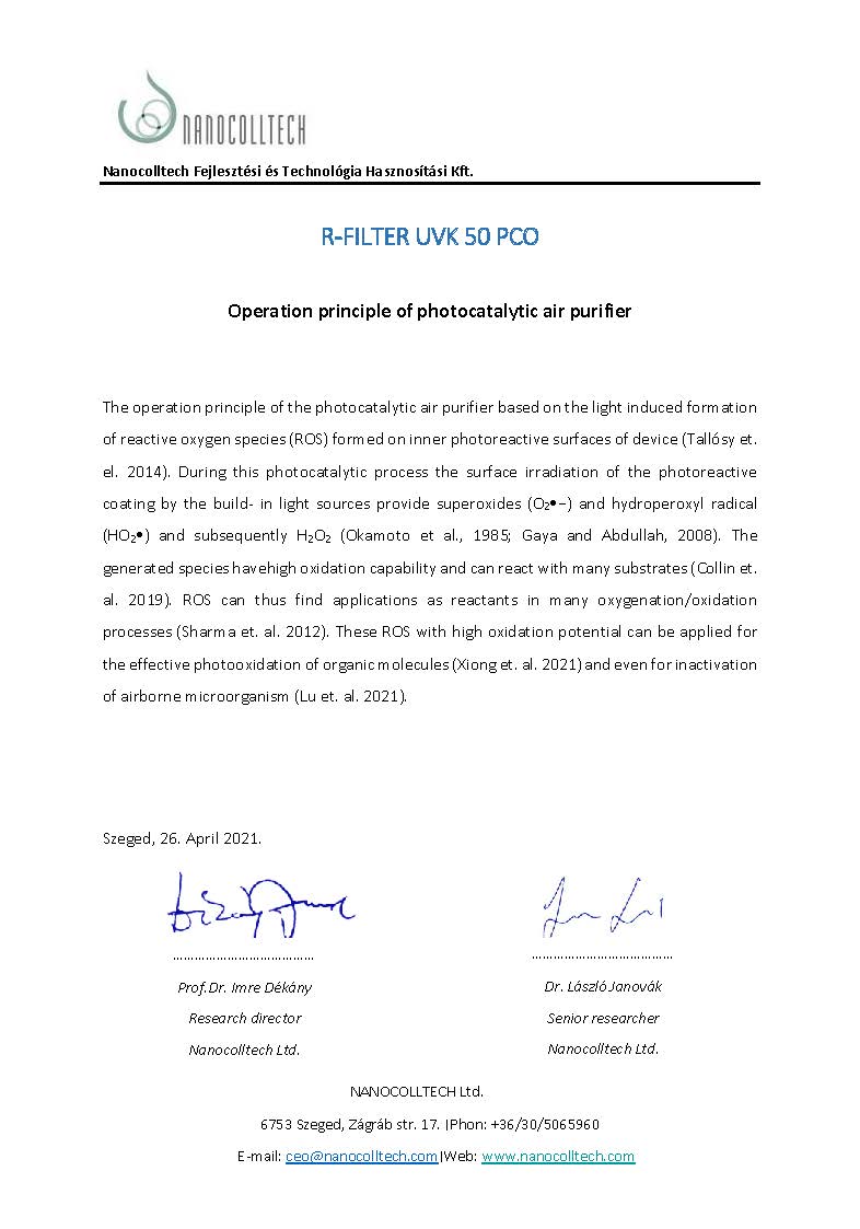 A fejlesztések során jelentős mértékben profitálunk a titándioxid nanotechnológia magyar tudományos kutatási eredményeiből. Munkánkban szellemi háttérként jelentős szerepet vállaltak a Szegedi Tudományegyetem kollégái, akikkel közös munka keretében maximalizáltuk a technológia hatásfokát.