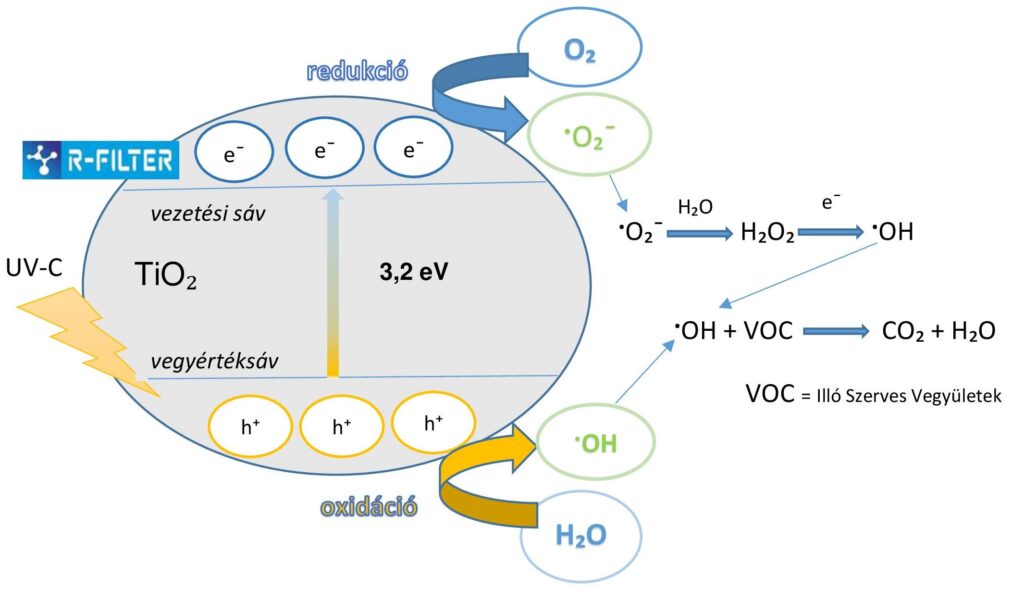 - az UV-fény és a fotokatalizátor együttes szinergikus hatása érvényesül